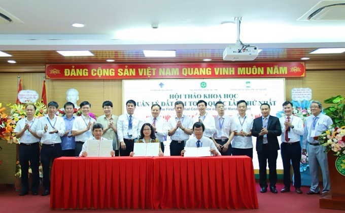 Lễ ký kết biên bản hợp tác giữa 3 đơn vị Học viện Nông nghiệp Việt Nam, Đại học Cần Thơ và Trường Đại học Nông lâm Huế tại Hội thảo Quản lý đất đai toàn quốc lần thứ nhất ở Học viện có sự chứng kiến của nguyên Thứ trưởng Bộ NN&MT Lê Minh Ngân-Bí thư Tỉnh uỷ Lai Châu (do Khoa Tài nguyên và Môi trường chủ trì chuyên môn) |