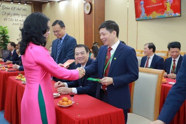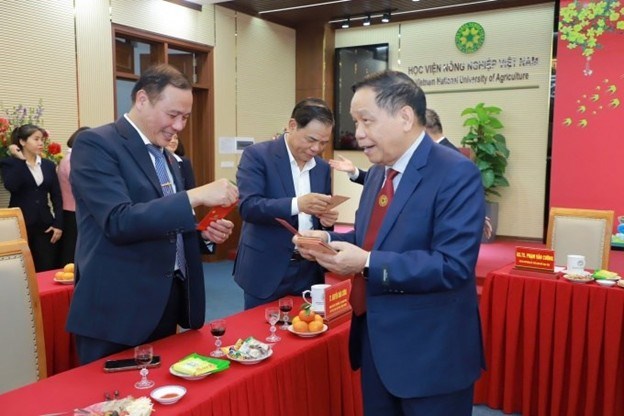 | TS. Nguyễn Xuân Cường - nguyên Bộ trưởng Bộ Nông nghiệp và Phát triển nông thôn chúc mừng năm mới cán bộ, viên chức, người lao động của Học viện |