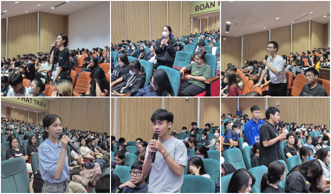 Tại phiên giao lưu, thảo luận cùng các diễn giả, rất nhiều sinh viên đặt câu hỏi liên quan đến kiến thức và kỹ năng chuyên môn cũng như chủ đề mà các diễn giả trình bày. Trong đó, các em quan tâm nhiều đến tiêu chuẩn tuyển dụng của các doanh nghiệp, xu hướng nghề nghiệp và vị trí việc làm của ngành trong tương lai. Đặc biệt, chủ đề về cơ hội thực tập tại các các doanh nghiệp đối với các học phần thực tập nghề nghiệp và khoá luận tốt nghiệp thu hút nhiều câu hỏi nhất từ sinh viên tham dự.