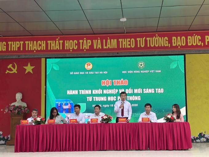 Sáng 18-4, tại Trường THPT Thạch Thất (Hà Nội), Học viện Nông nghiệp Việt Nam phối hợp với Sở Giáo dục và Đào tạo Hà Nội tổ chức Hội thảo “Hành trình khởi nghiệp và đổi mới sáng tạo từ trung học phổ thông”. Chương trình thu hút sự tham gia của các nhà quản lý giáo dục, chuyên gia, doanh nghiệp cùng hàng nghìn học sinh tham dự trực tiếp và trực tuyến.