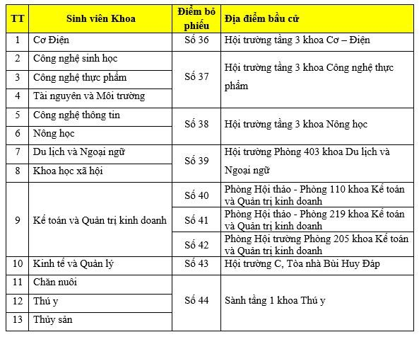 Cử tri đến đúng điểm bầu cử để bỏ phiếu bầu cử. Tại Học viện Nông nghiệp Việt Nam, 09 địa điểm bỏ phiếu cụ thể như sau:
